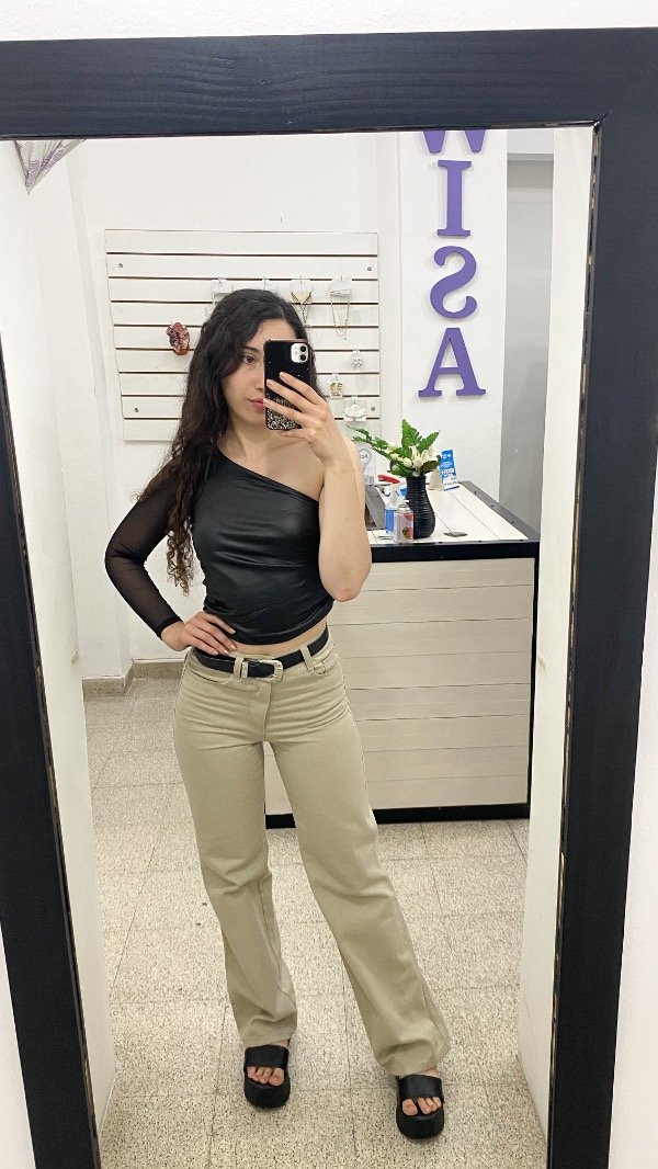 Jean wide leg rigido, tiene bolsillos delanteros.