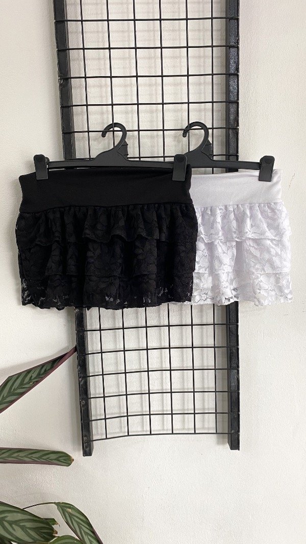Pollera de encaje con short incluido. Abarca un 36/38 de jean