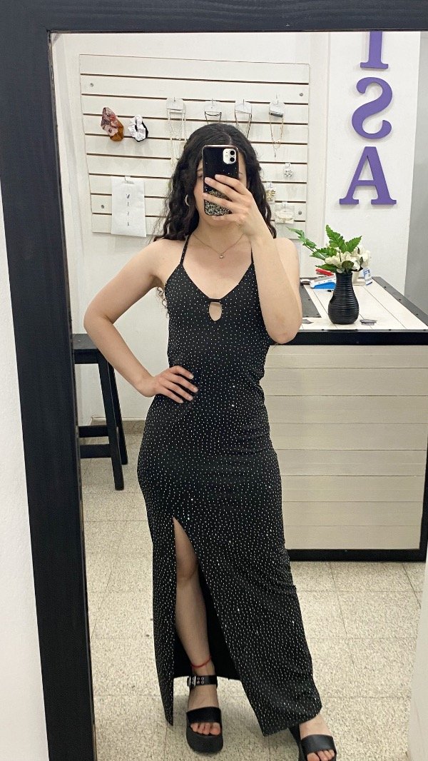 Vestido con strass. Abarca un talle 36/38/40 de jean y hasta 95 de busto.